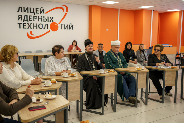 С приветственным словом к участникам заседания обратилась директор Лицея ядерных технологий Ирина Астраханцева, положительно отметив, что лицей стал площадкой для диалога и обсуждения важных тем, таких как межнациональные отношения, сохранение межконфессионального мира, роль религиозных организаций в укреплении духовно-нравственных ценностей, а также патриотическое воспитание подрастающего поколения. Ирина Владимировна познакомила с историей создания образовательного учреждения и отметила, что в январе 2024 года лицей стал базовой школой при ФГАОУ ВО «Национальный Исследовательский Ядерный Университет «МИФИ», отвечающий всем требованиям современного времени. В настоящее время лицей полностью укомплектован кадрами, среди них заслуженные учителя, профессора вузов, молодые преподаватели.
