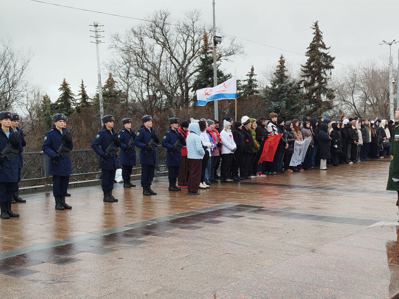 Десантники прошли торжественным маршем и отдали воинские почести.