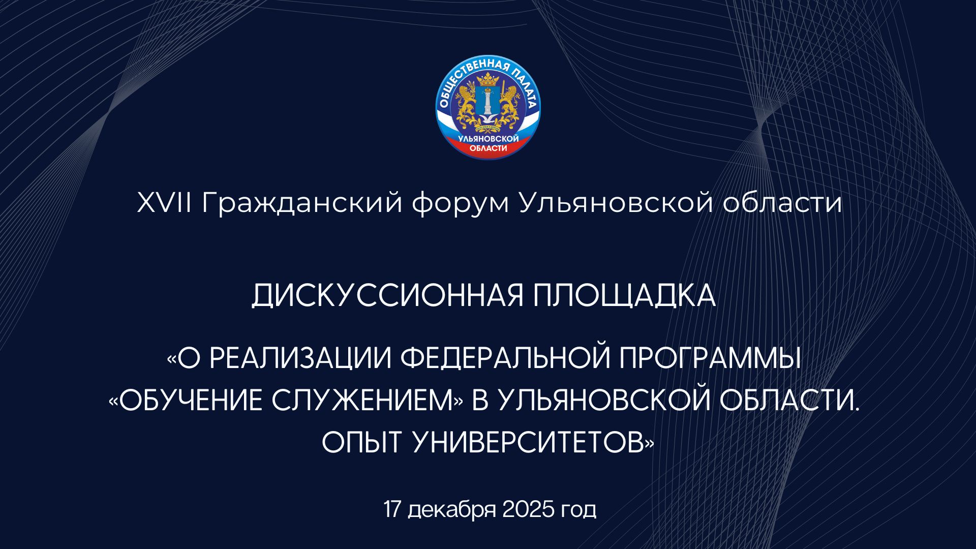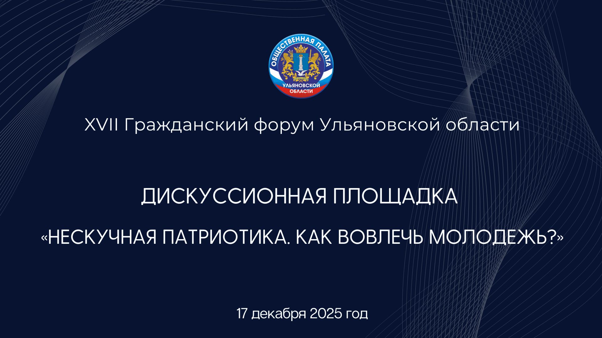 17 декабря 2025 года в рамках программы XVII Гражданского форума Ульяновской области «ЗАЩИТА ОТЕЧЕСТВА – ДЕЛО КАЖДОГО» пройдёт дискуссионная площадка «Нескучная патриотика. Как вовлечь молодежь?». Организатор площадки — Общественная палата муниципального образования «Город Ульяновск». Модератор — Титова Елена Сергеевна, член Общественной палаты города Ульяновска, заместитель…