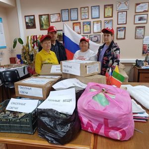 Ветераны встретились с главой администрации района Маратом Гафаровым и представителями общественного фонда «Благодарение». От руководства района была получена большая партия гуманитарной помощи, включающая продукты питания (макароны — 30 кг, крупы — 50 кг, чай — 10 пачек, мёд — 30 кг, печенье — 5 кг, домашняя лапша — 3 коробки), воду бутилированную (0.5 л — 100 шт., 5 л — 45 шт.), шерстяные носки (40 пар), маскировочные сети, моторное масло (10 л), пластиковые бочки (30 л — 16 шт.), шампунь (3 коробки), зубную пасту (20 шт.), зубные щетки (20 шт.), спички (30 коробок), бритвы одноразовые (15 шт.), пену для бритья (10 шт.), хозяйственное мыло (30 шт.) и стиральный порошок (5 упаковок).