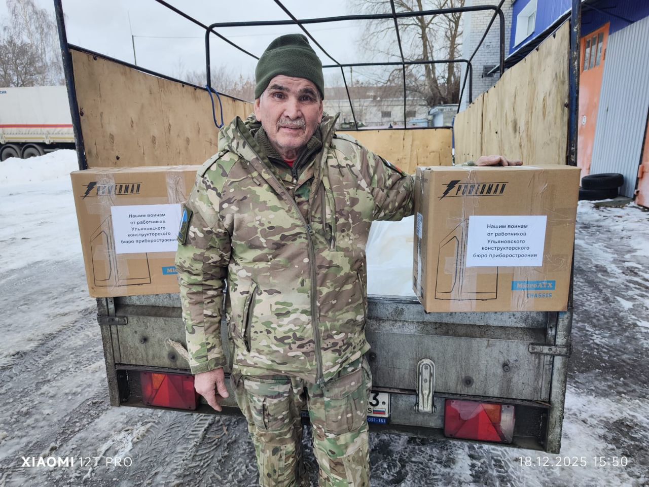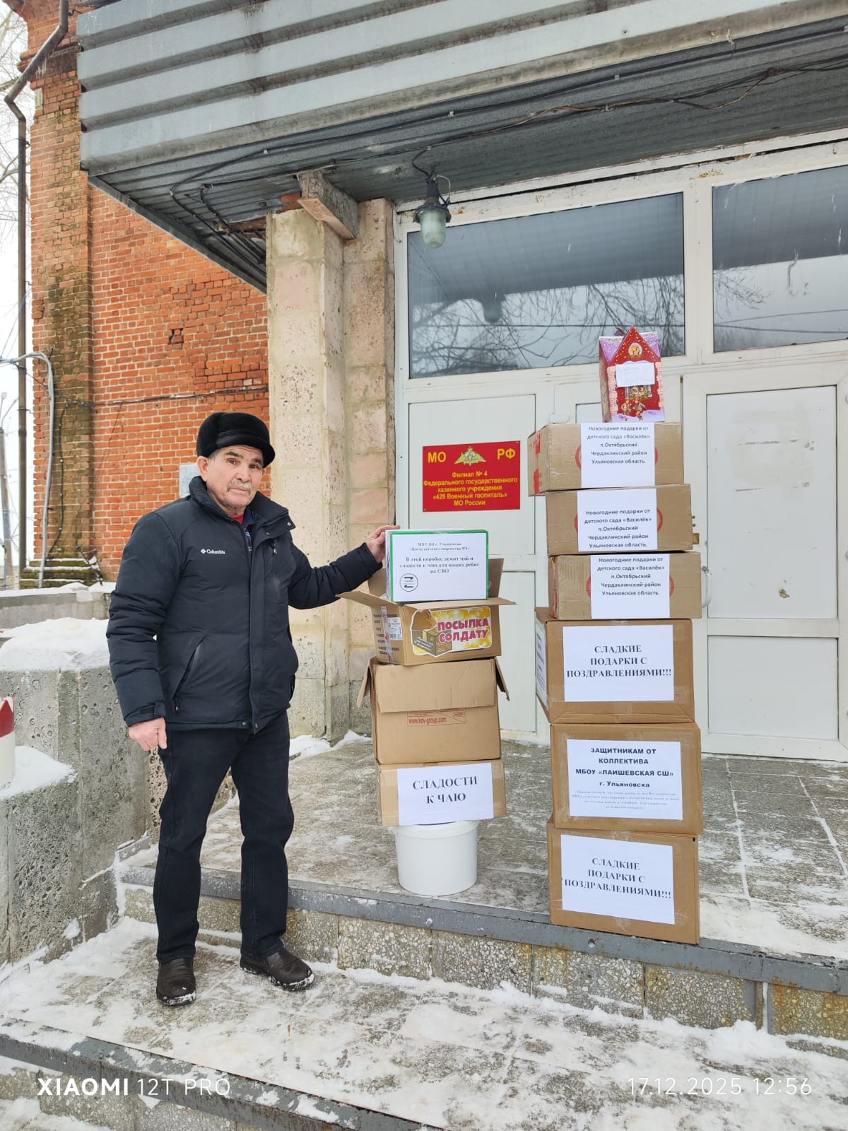 17 декабря 2025 года представители Ульяновского ОРО МОО ветеранов боевых действий «Рубеж» через транспортную компанию «Энергия» получили гуманитарную помощь из города Саяногорска Республики Хакасия. В состав груза вошли маскировочные сети различного размера и назначения, маскировочные костюмы «Леший», шерстяные носки, влажные салфетки, сухофрукты, медикаменты, крема, сладости, а также коробки с новогодними подарками и именные посылки.
