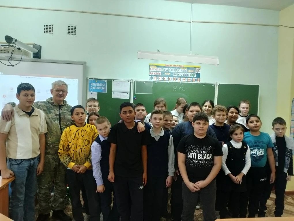 Урок представлял собой не просто лекцию, а диалог между поколениями. Владимир Егорович рассказал о своем жизненном пути, службе в армии и участии в боевых действиях. Он подчеркнул важность таких понятий, как долг, честь и готовность защищать свою семью и Родину. Его слова вызвали глубокий эмоциональный отклик у школьников, которые проявили искренний интерес к рассказчику и задавали уточняющие вопросы.