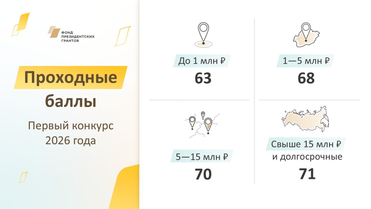 Победителями стали 1 469 социально ориентированных некоммерческих организаций, проекты которых преодолели определенный Координационным комитетом порог: для запросов до 1 млн рублей – 63 балла, от 1 до 5 млн рублей – 68, от 5 до 15 млн рублей – 70, свыше 15 млн рублей – 71 балл.