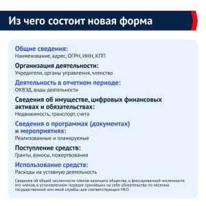Общественная палата РФ собрали на карточки самую важную информацию. Сохраняйте, делитесь с коллегами по некоммерческому сектору и используйте как чек-лист при подготовке отчета.