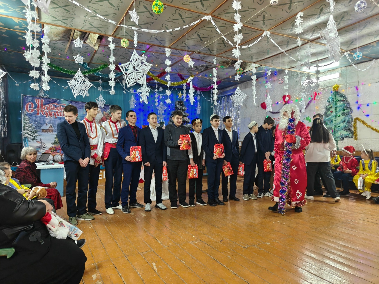 Гости не остались без внимания и подарков: в соответствии с традицией, каждый учащийся школы получил новогодний подарок от гостей.